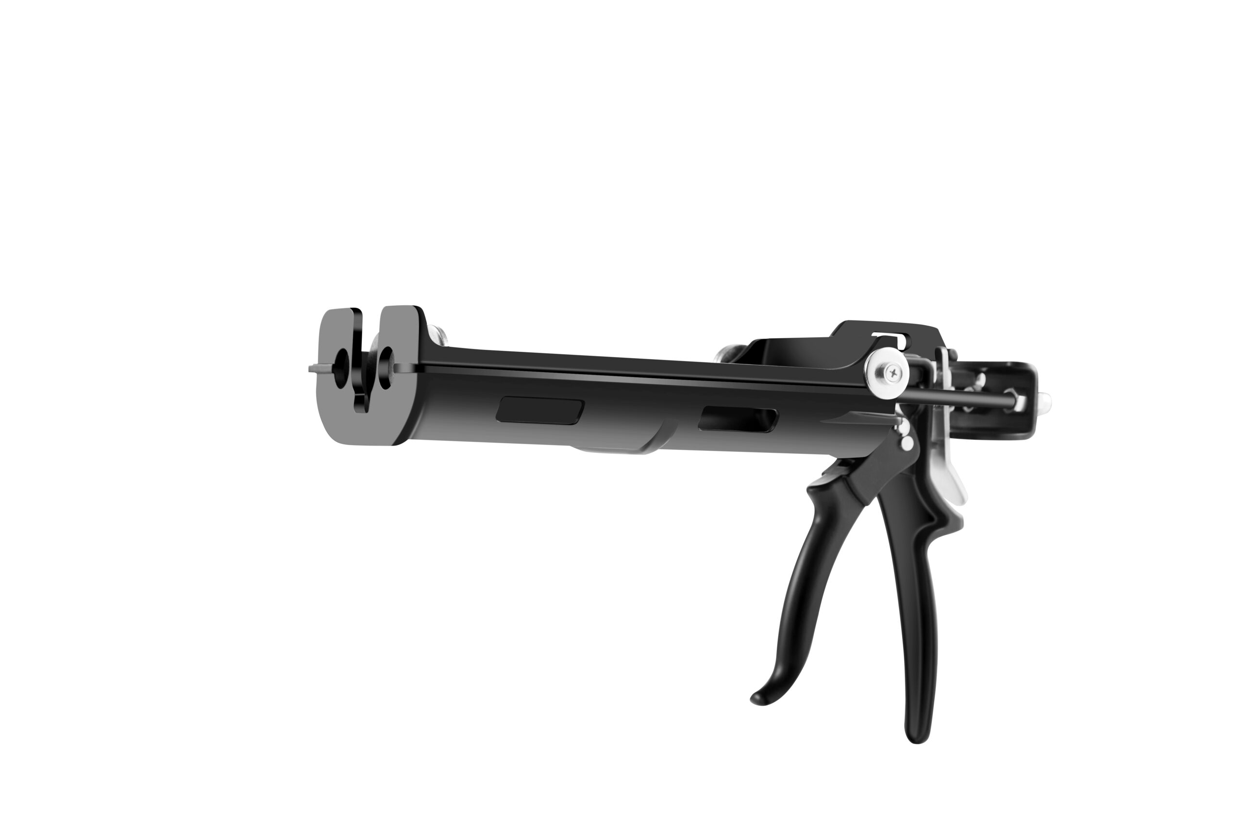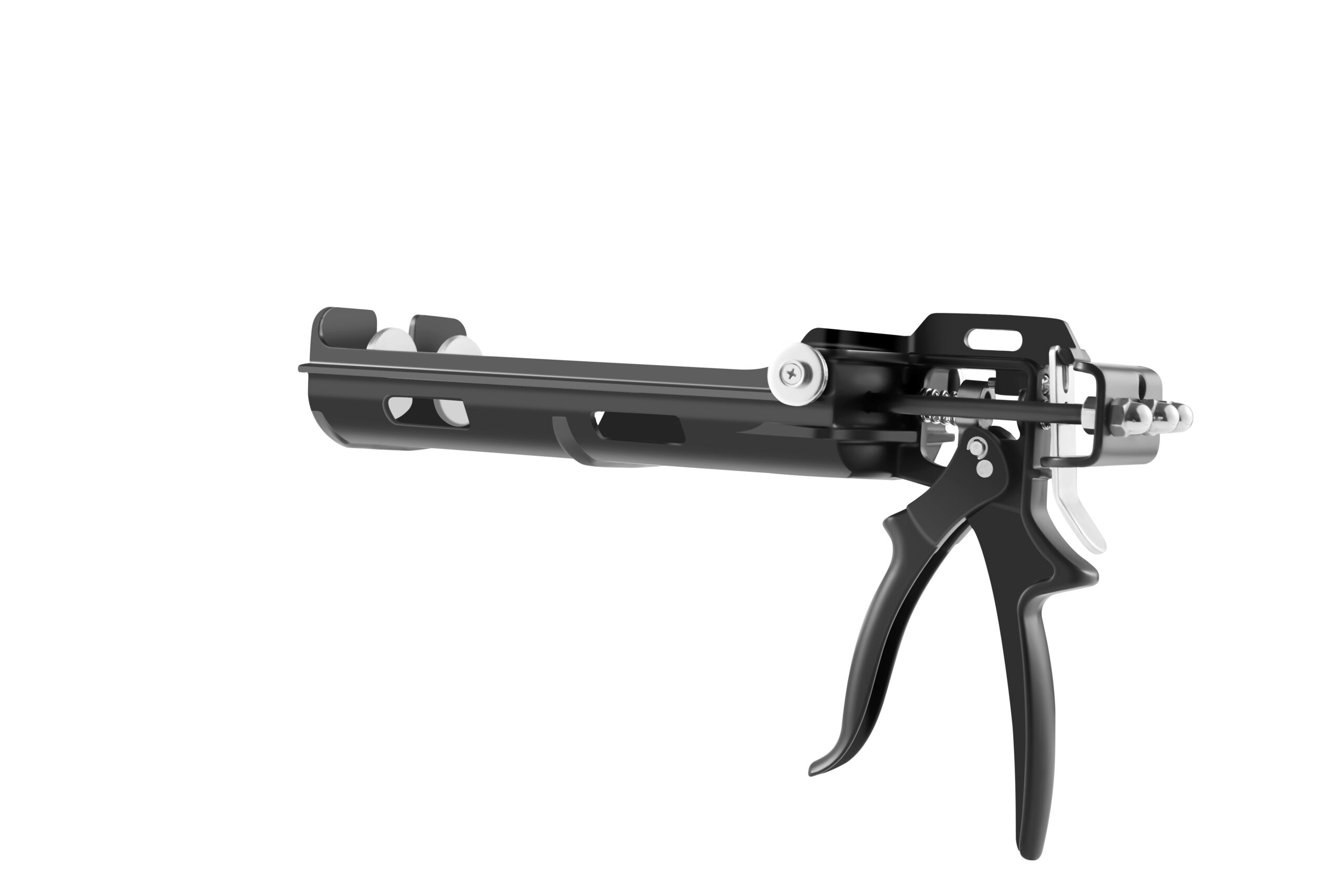 This lightweight magnesium dispenser is designed for two 300 mm SBS cartridges and features a galvanized round rod with a ladder hook for secure handling. The catch block provides pressure resistance up to 6000 N, and the serial number is laser-printed for clear identification. It includes a manual locking plate and delivers a thrust ratio of 25:1 for powerful dispensing, while the ergonomically shaped handgrip ensures comfortable use over extended periods.