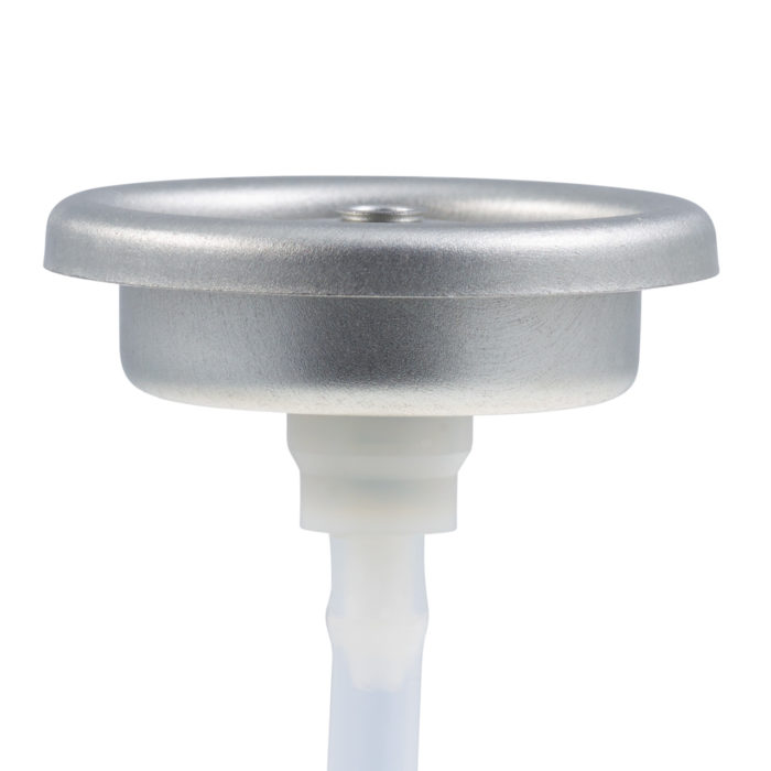 One-inch female valve with three-position spray rate control (low, medium, high) for tailored application. Provides continuous spray and comes with a tinplate mounting cup. Ideal for products requiring variable spray control. Suitable for tinplate or aluminum aerosol cans.